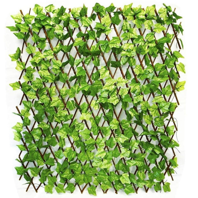🌿 Size: 200 x 100 cm expandable wooden trellis with faux greenery